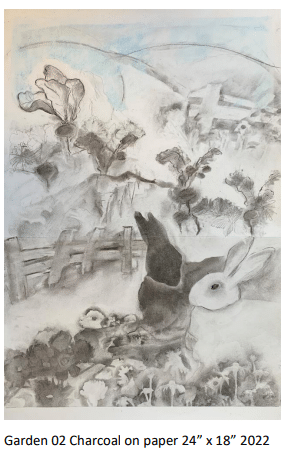 Inspired by her ceramic pieces, Katz has created a series of charcoal drawings exploring shape, form, texture, and scale. As the drawings develop and create a sculptural presence, Katz sees her next round of ceramic pieces inspired from her drawings!