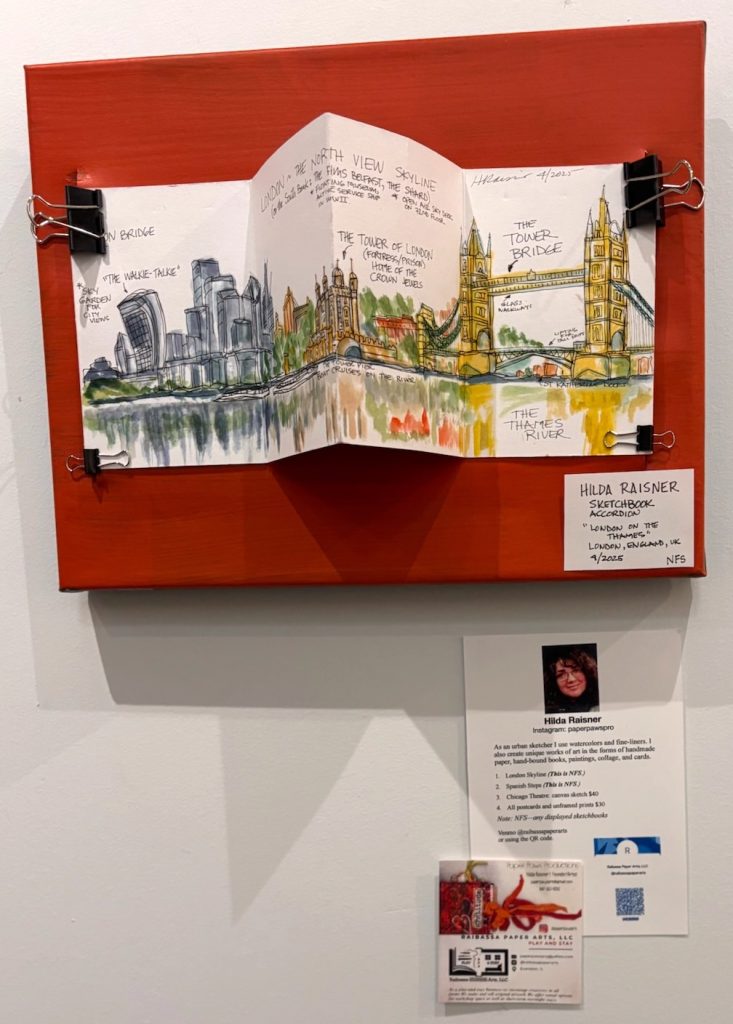 As an urban sketcher I capture the scene while telling a story in my own style using watercolors and fine-liners. I also create unique works of art in the forms of handmade paper, hand-bound and fold books, paintings, collage, and cards.