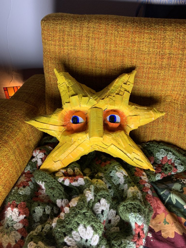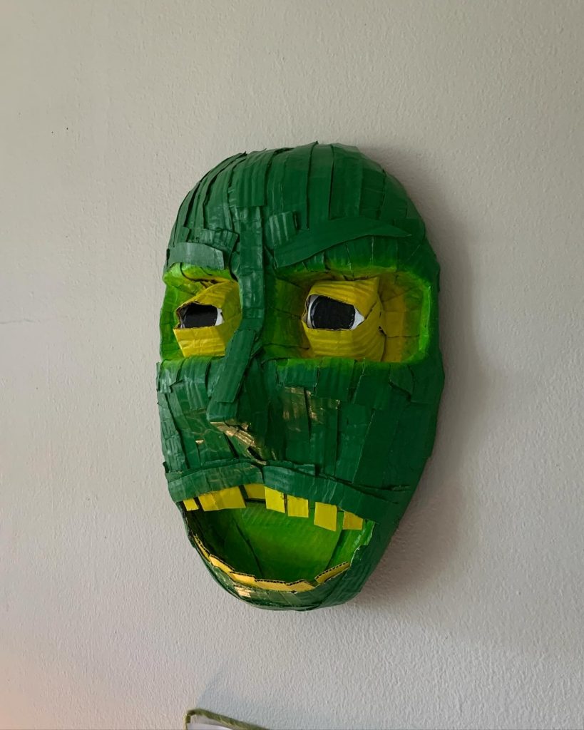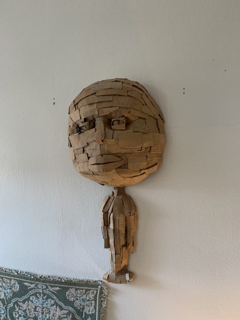 I am a self taught artist based in Rogers Park. I prefer working with found materials and second hand materials. I currently work with cardboard to make sculptures. I also do work with textile crafts like knitting and crochet. I want to connect with puppeteers to learn more about adding movement to my work.