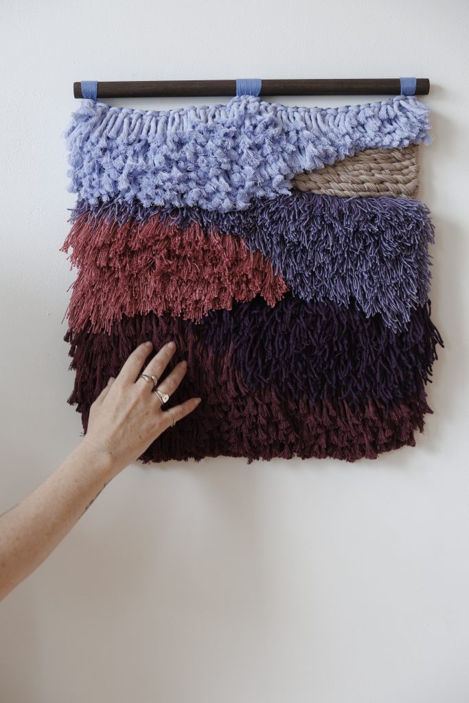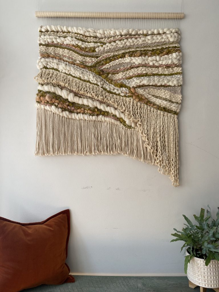 Robin Ryan is an innovative fiber and textile artist based out of her home studio in Chicago, IL. Robin’s work focuses on large scale tapestries, as well as fiber sculpture and textile design. Robin finds inspiration from other creatives, modern art, the natural world, and vintage textiles. Her aesthetic features dense textures, rich layers, interesting shapes, and organic movement. Self-taught and eager to take on new techniques and challenges, Robin collaborates across industries to ideate, design, and develop work for events, pop-ups, and permanent installations in homes and public spaces. Today, Robin’s fiber work can be found in online galleries, boutiques, private collections and pop ups.