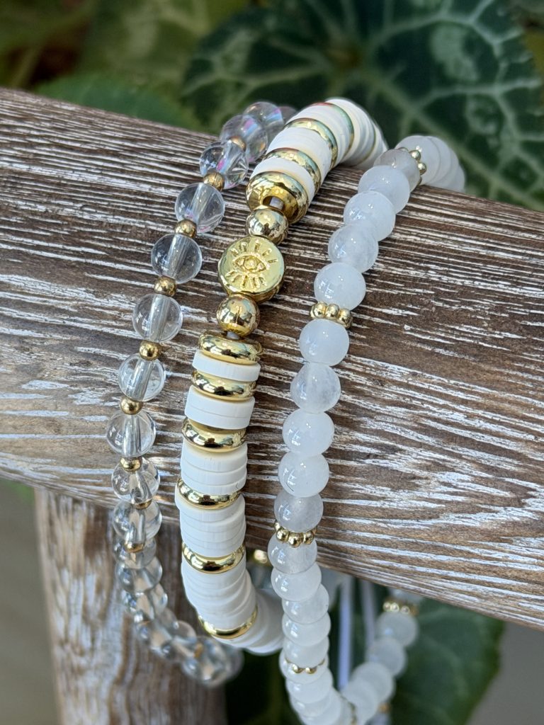 I’m Stephanie—a local artist who’s traded pixels for beads! After years in digital art and design, I’ve found a new joy in hand-crafted bracelets made with glass, semi-precious stones, and real gold or silver accents (never plastic!). I’ve lived in Evanston for over a decade and love creating pieces that reflect the warmth and creativity of this community.
